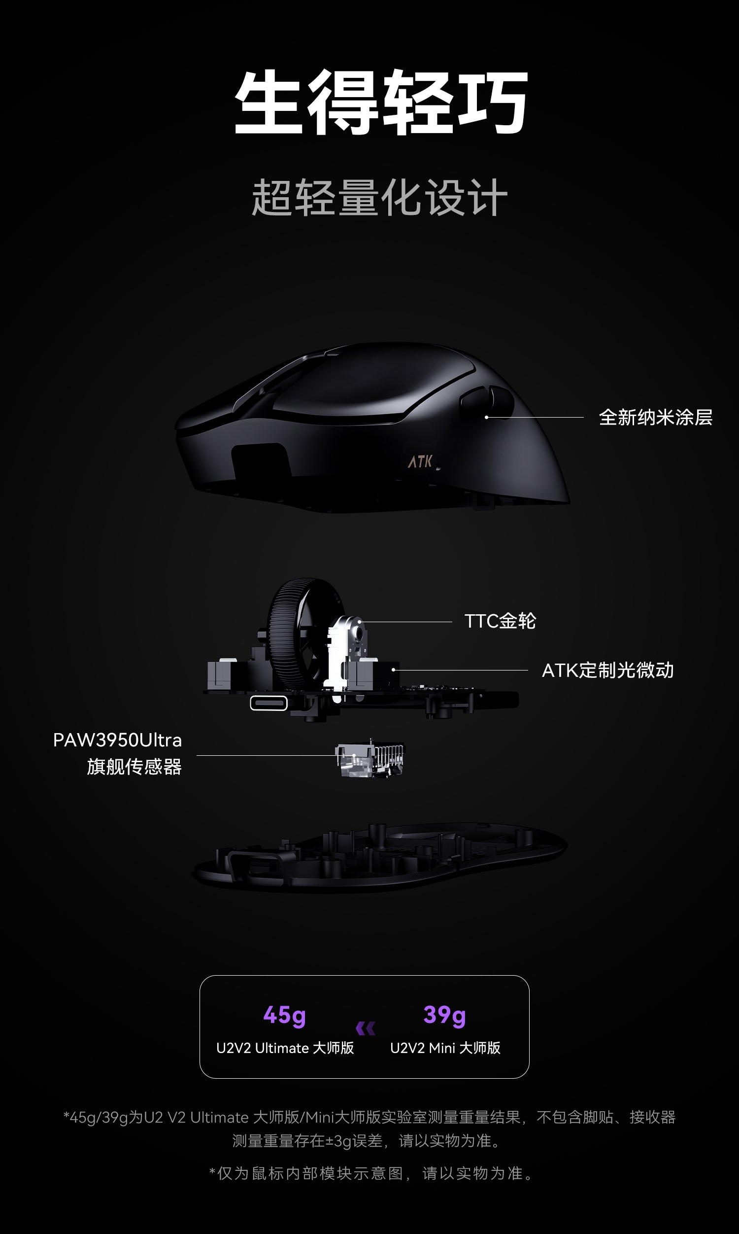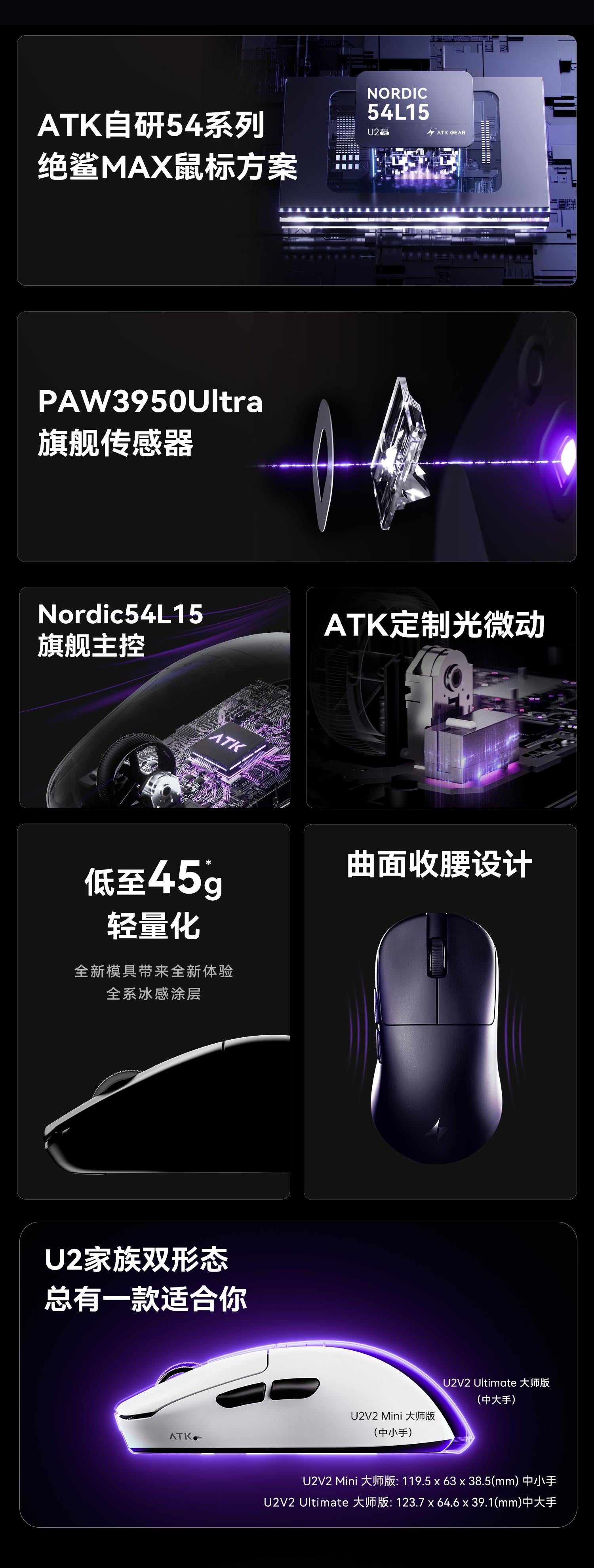 ➡️U2V2大師版/U2V2MINI大師版:PAW3950ULTRA + NORDIC 54L15 性能與續行完美平衡